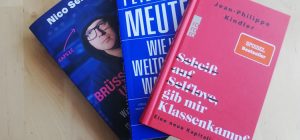 Nico Semsrott (»Brüssel sehen und sterben. Wie ich im Europaparlament meinen Glauben an (fast) alles verloren habe«), Jean-Philippe Kindler (»Scheiß auf Selflove, gib mir Klassenkampf – Eine neue Kapitalismuskritik«), Peter Mertens (»Meuterei – Wie unsere Weltordnung ins Wanken gerät«)